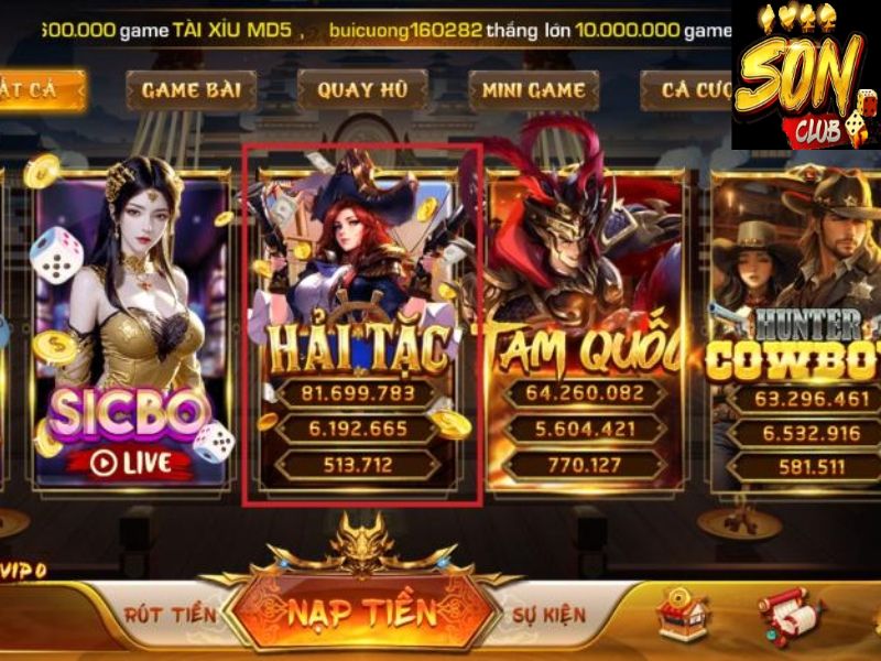 - Sonclub cung cấp hệ thống nạp rút tiền đa dạng và bảo mật, giúp người chơi có trải nghiệm liền mạch khi tham gia các trò chơi như Hải Tặc Sonclub.